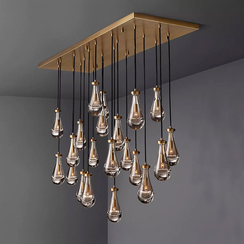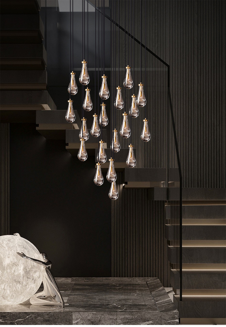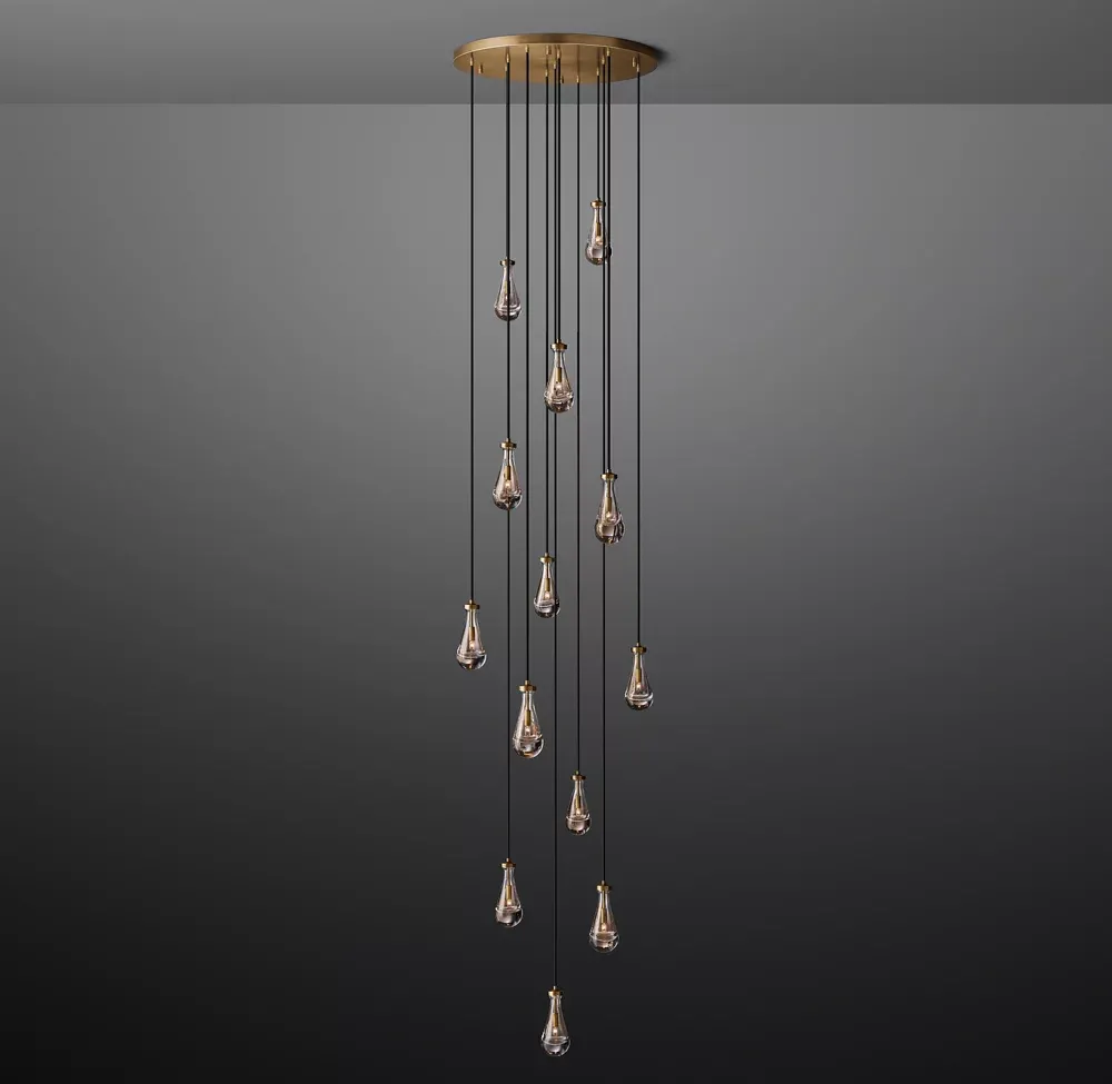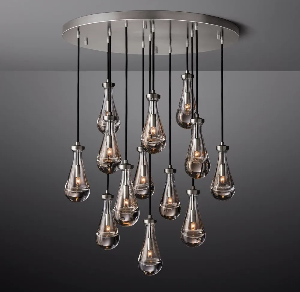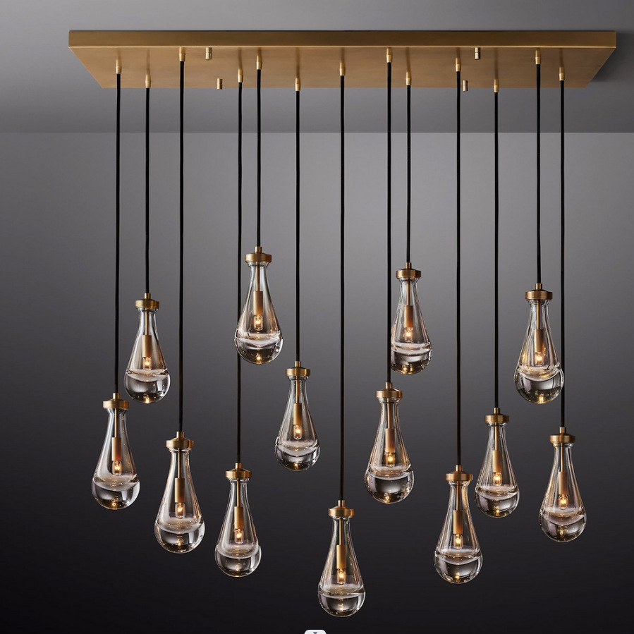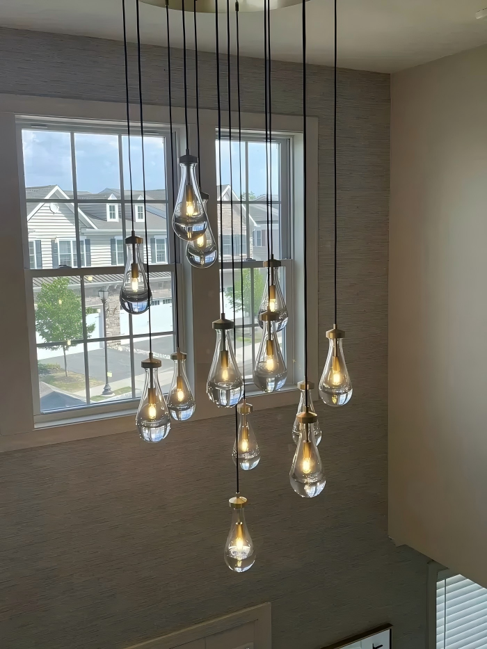 Elevate your space with this sleek teardrop glass chandelier. Crafted with premium stainless steel or brass hardware, available in brass, matte black, or brushed nickel finishes. The high-transparency glass shades refract light beautifully, casting a warm, sparkling glow. Perfect for dining rooms, living rooms, entryways, and foyers, it adds timeless modern elegance to any home or commercial space.